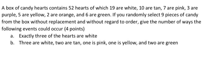 1 2 16 A Box Of Candy Hearts Contains 52 Hearts Chegg Com