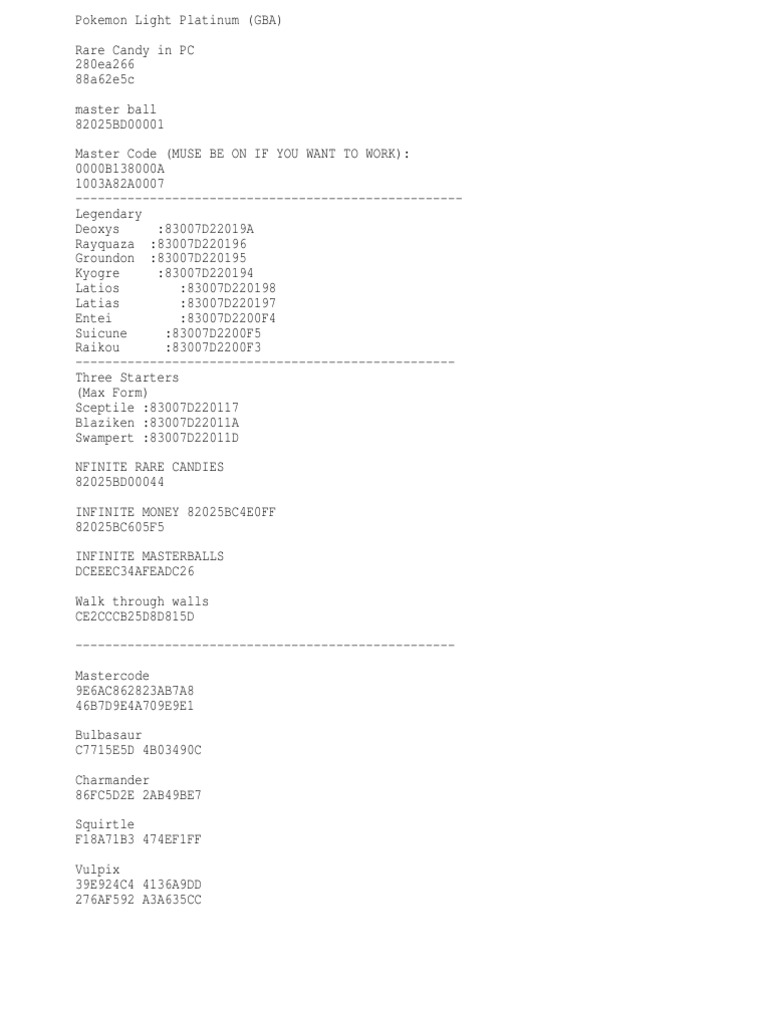 Note: Copyright of all images in pokemon light platinum gba cheats rare candy content depends on the source site. We hope you do not use it for commercial purposes.