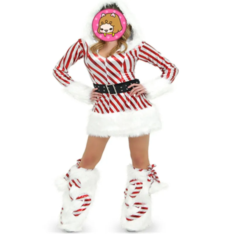 Sexy Candy Cane Costumes For Women Christmas Santa Claus Outfit