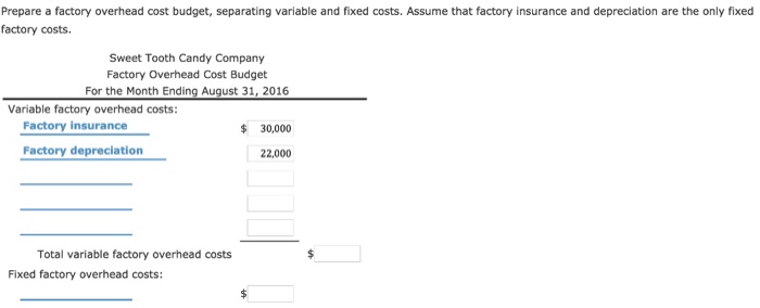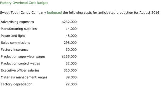 Solved Factory Overhead Cost Budget Sweet Tooth Candy Com