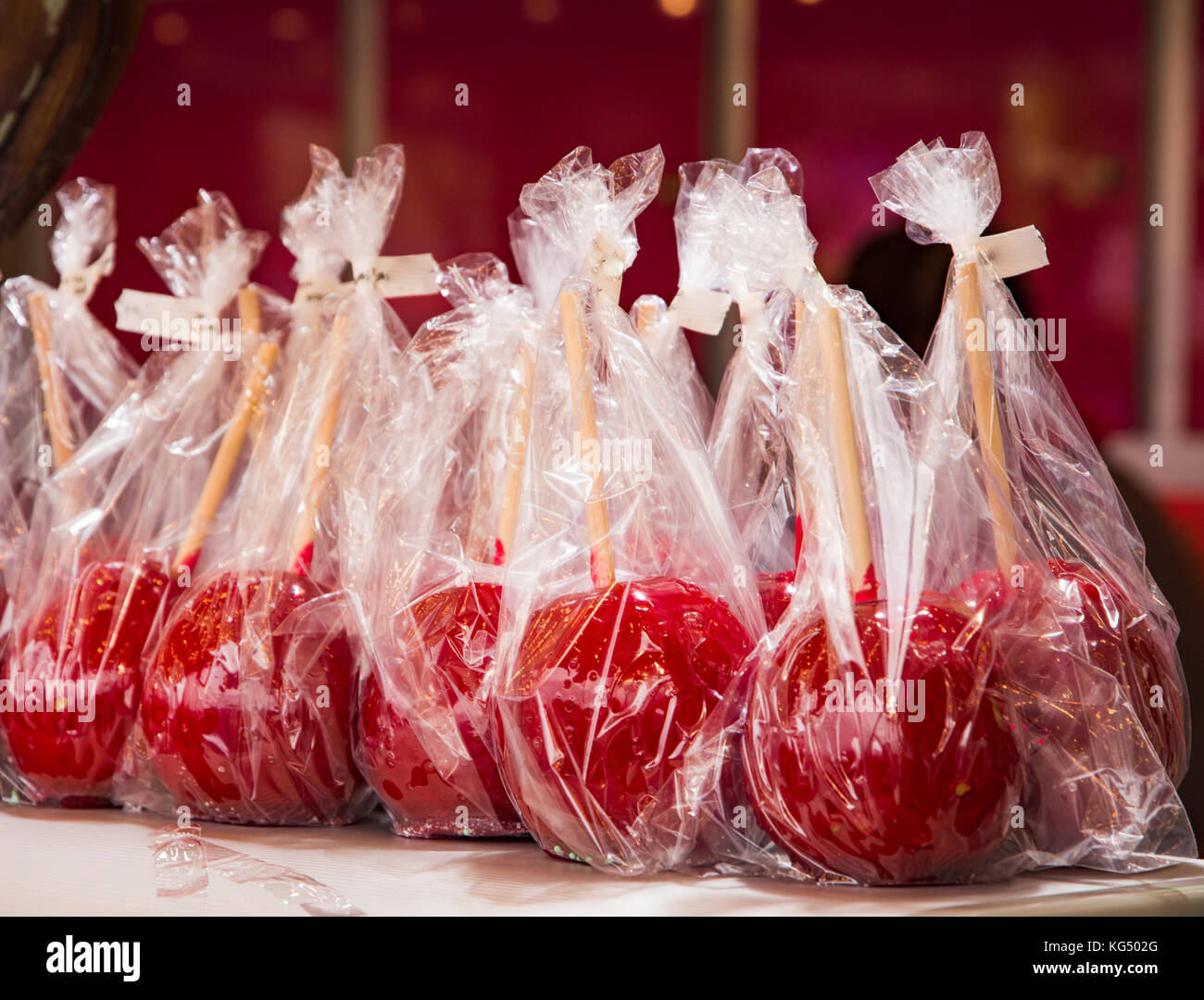 Delicious Red Candy Apples In Plastic Foil Stock Photo Alamy